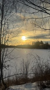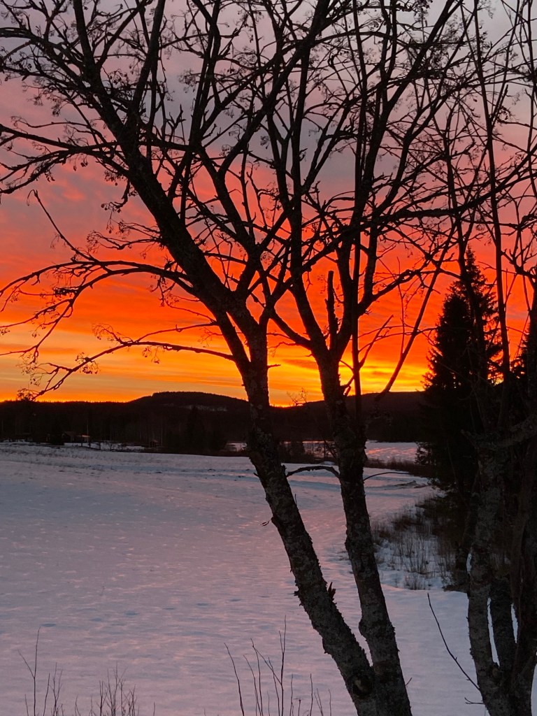 Avslutar med en solnedgång. Det har varit många vackra sådana i vinter. Hos oss går solen ner över Torbjörns tak. 🤣